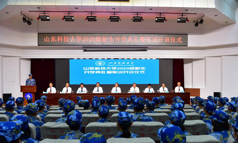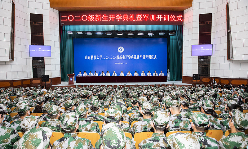 有关部门、各院系主要负责人,泰安校区、济南校区有关负责人,学生工作干部、教师代表、军训教官及2020级全体新生参加了典礼。