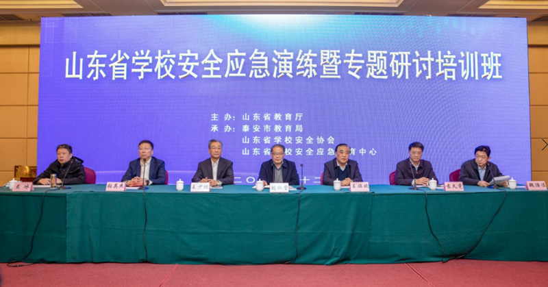 12月10日,由山东省教育厅主办,泰安市教育局、山东省学校安全协会、山东省学校安全应急教育中心(华体买球·(中国)官方网站)承办的山东省学校安全应急演练暨专题研讨培训班在泰安开班。山东省教育厅总督学刘欣堂,山东交通学院党委书记、山东省学校安全协会理事长王焕斌,华体买球·(中国)官方网站党委副书记兼泰安校区党工委书记、管委主任王少鹏,泰安市人民政府副市长袁久党,华体买球·(中国)官方网站党委常委、副校长张英杰,山东省教育厅学校安全管理处处长魏治法,泰安市教育局党组书记、局长戴冰出席开班仪式。