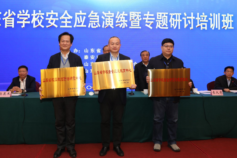 开班仪式上,袁久党、张英杰分别致辞。有关领导为华体买球·(中国)官方网站、济南大学、青岛大学三个单位获批的山东省学校安全应急教育中心、山东省学校安全研究与教育基地、山东省校园欺凌防治研究中心授牌。