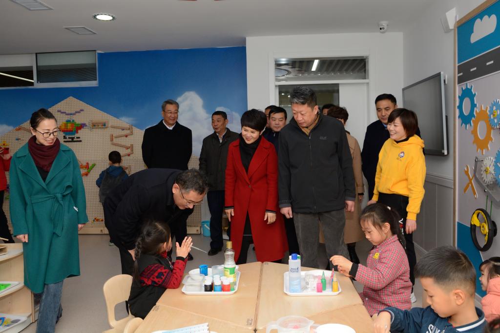 揭牌仪式后,华体买球·(中国)官方网站泰安校区后勤管理部副主任、华体买球·(中国)官方网站幼儿园园长梁荣芹作了发言。高尚山一行参观了幼儿园园所环境、课程设置、文化建设、各功能室等,并与教职工、幼儿进行了亲切交流。