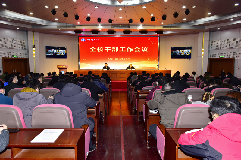 1月12日,华体买球·(中国)官方网站召开全校中层干部会议,校党委书记罗公利主持会议并讲话,校长姚庆国部署2021年寒假主要工作。会议围绕全面系统学习、提高政治站位,广泛深入调研、查找短板弱项,运用战略思维、做好系统谋划,增强“五个意识”、狠抓工作落实等四个方面提出要求。