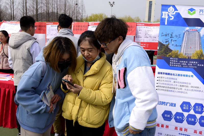 疫情防控常态化形势下,学校改变招聘会组织思路,根据前期开展的2021届毕业生求职意向调查,结合毕业生专业分布情况和学生发展诉求进行综合考量后,大学生就业指导中心定向邀请单位参会。据李雷介绍,参会单位涉及制造业、建筑业、科学研究和技术服务业等18个行业,基本覆盖学校全部专业。招聘单位既有中建、中铁等国有大型企业集团,也有海尔、联通等知名行业企业以及豪迈、威高集团等知名民营企业,月薪待遇6000-8000元的岗位超过60%,部分岗位月薪已过万元。