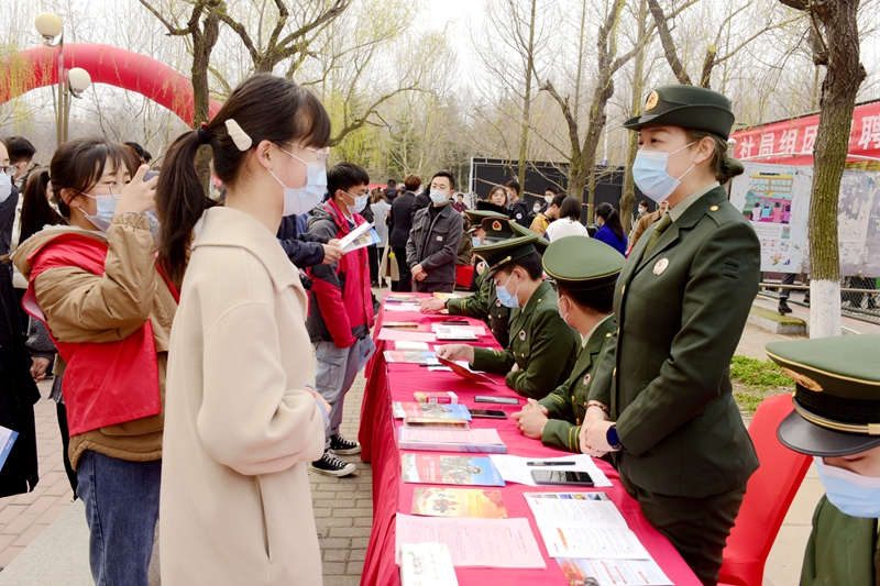 现场除了各家企业之外,大学生征兵服务站成了很多毕业生驻足停留的地方。“军人是一种崇高的职业,身着迷彩也能建功立业”学生处就业市场科科长李雷介绍,“保家卫国也能建功立业,华体买球·(中国)官方网站春季招聘会专门设置了征兵服务站区,由退伍大学生向毕业生及各年级同学介绍征兵入伍政策、鼓励吸引大学生入伍建功立业。”