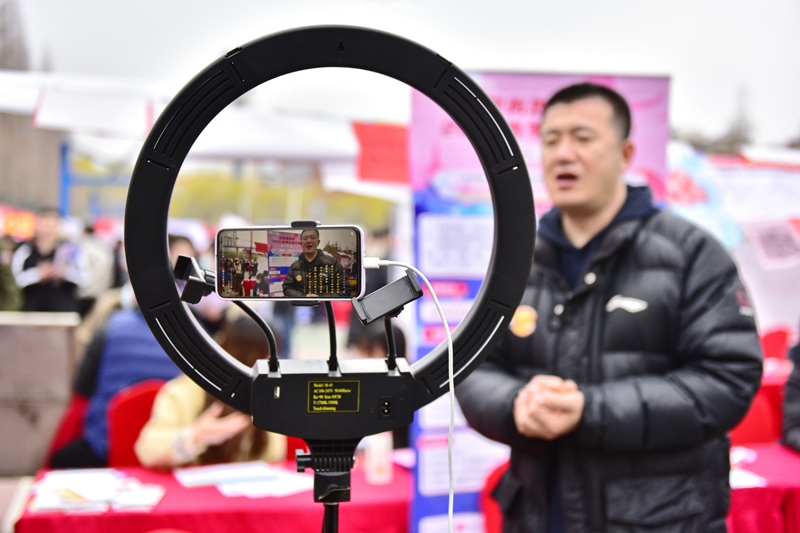为让同学们精准捕捉匹配的职位再来现场,“线上线下”双保险促就业,外国语学院师生在招聘会现场做起了直播。外国语学院团委书记田禹表示:“学院有些同学没来现场,加上招聘会企业比较多,来的同学也可能有遗漏,我们就现场直播,精准介绍职位,让毕业生有备而来。”