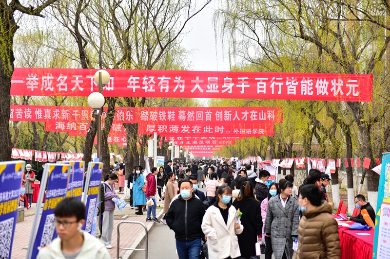 据介绍,“就选山东”山东省2021年高校毕业生集中招聘活动暨华体买球·(中国)官方网站春季校园双选会在山科大校园采取户外方式举办,也是2021年学校首场大型线下双选会,吸引了来自山东、北京、上海、广东等20个省市的760余家用人单位参会,提供就业岗位31000余个,招聘岗位涵盖本硕博各学历层次,当天7000余名毕业生来到招聘现场。各学院领导、班主任、系主任、辅导员也纷纷来到现场了解用人单位需求、推荐毕业生。
