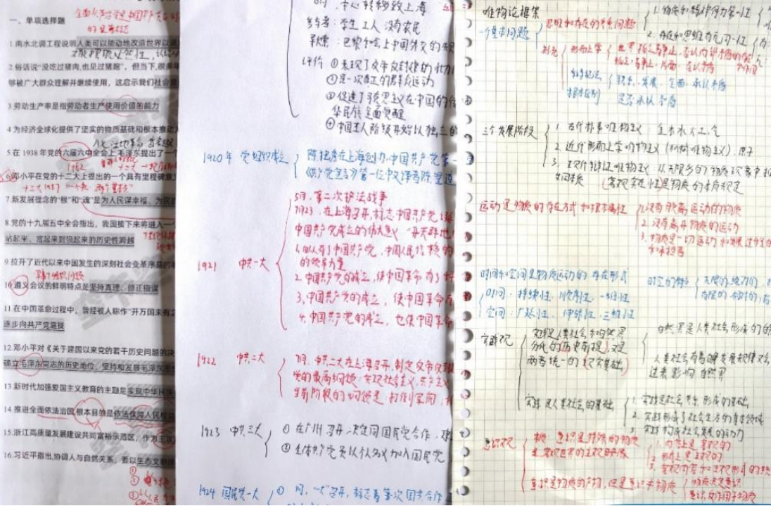 “听说你政治考了86分?”出成绩后,同学们经常问陈楠这个问题。提及政治,陈楠一脸自豪。“我选择题只扣了5分,大题答的也挺好。”“我考研战线拉得长,中途一些事情耽搁,九月底才跟着视频学完第一节,我只能背水一战。”时间紧,内容多,任务重,陈楠果断变更自己的学习思路和复习策略。“按我以前的方法和节奏,肯定行不通。我就开始厘清各个章节逻辑,顺时间线,制作思维导图,然后背诵记忆,再通过刷题巩固。” 量变终成质变。陈楠凭借着考前70多套题的积累,证明了即使是地地道道的工科男,也是可以手到擒来攻克文科的。“很无奈的情况下耍的小聪明,也算临时抱对佛脚了吧,不能也不敢再有下回了。”陈楠感慨道。