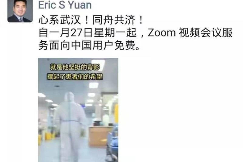 校友、Zoom公司创始人袁征在大洋彼岸将公司视频会议系统对所有中国用户免费