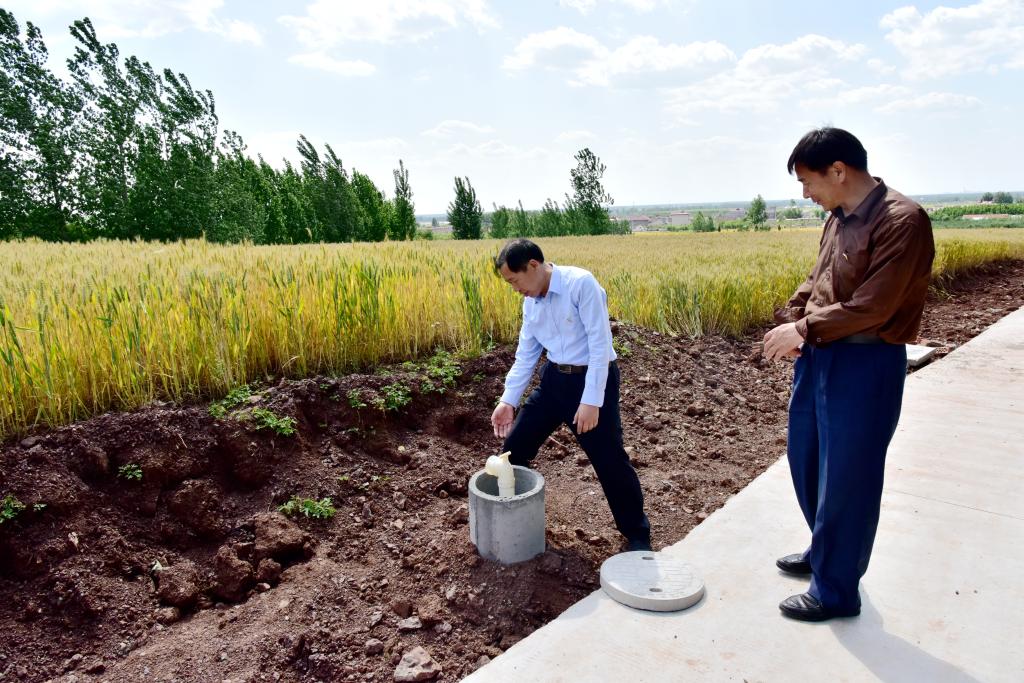 第一书记在查看农田灌溉水井
