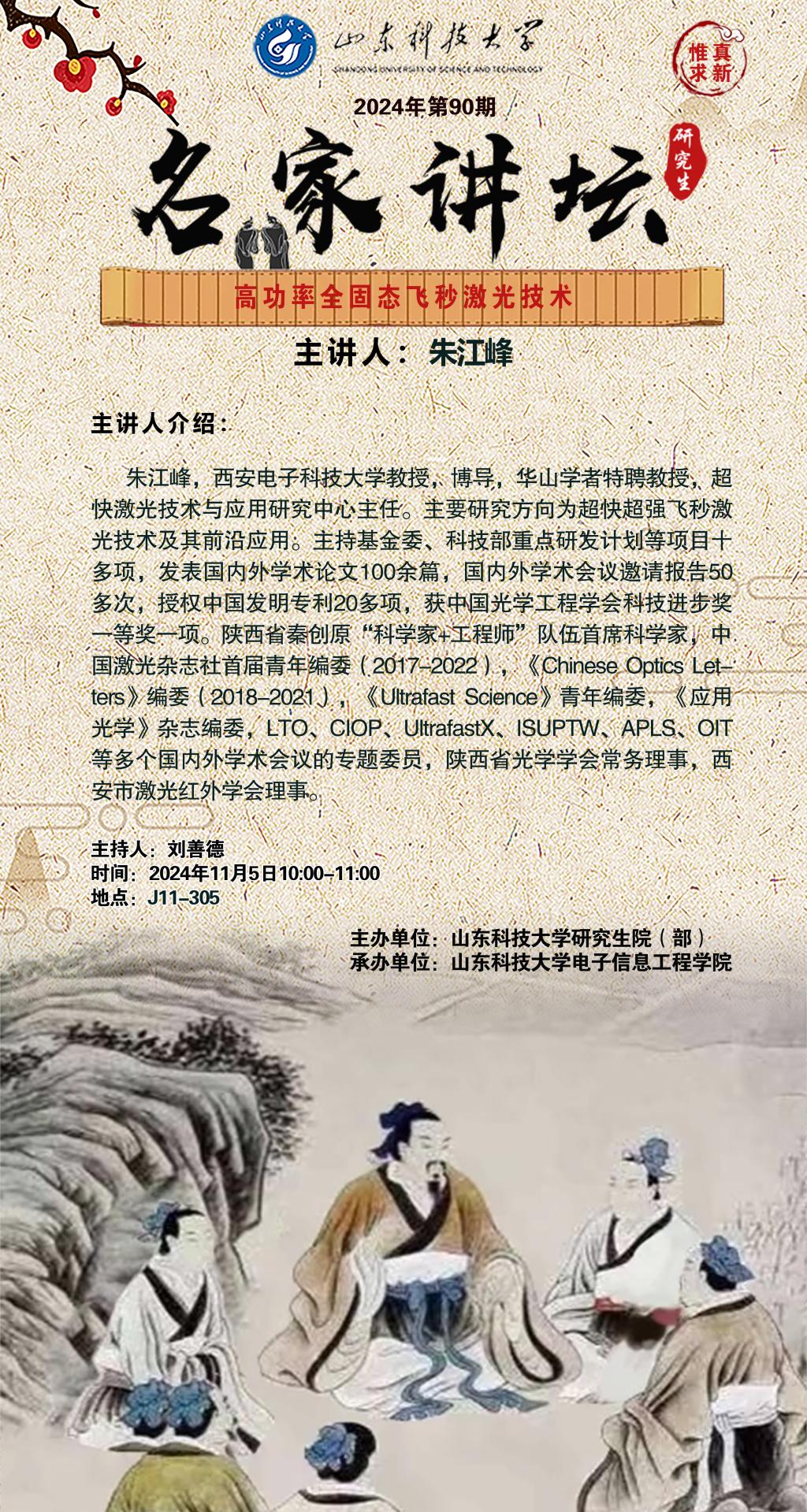 “名家讲坛”2024年第90期:高功率全固态飞秒激光技术(总984期)