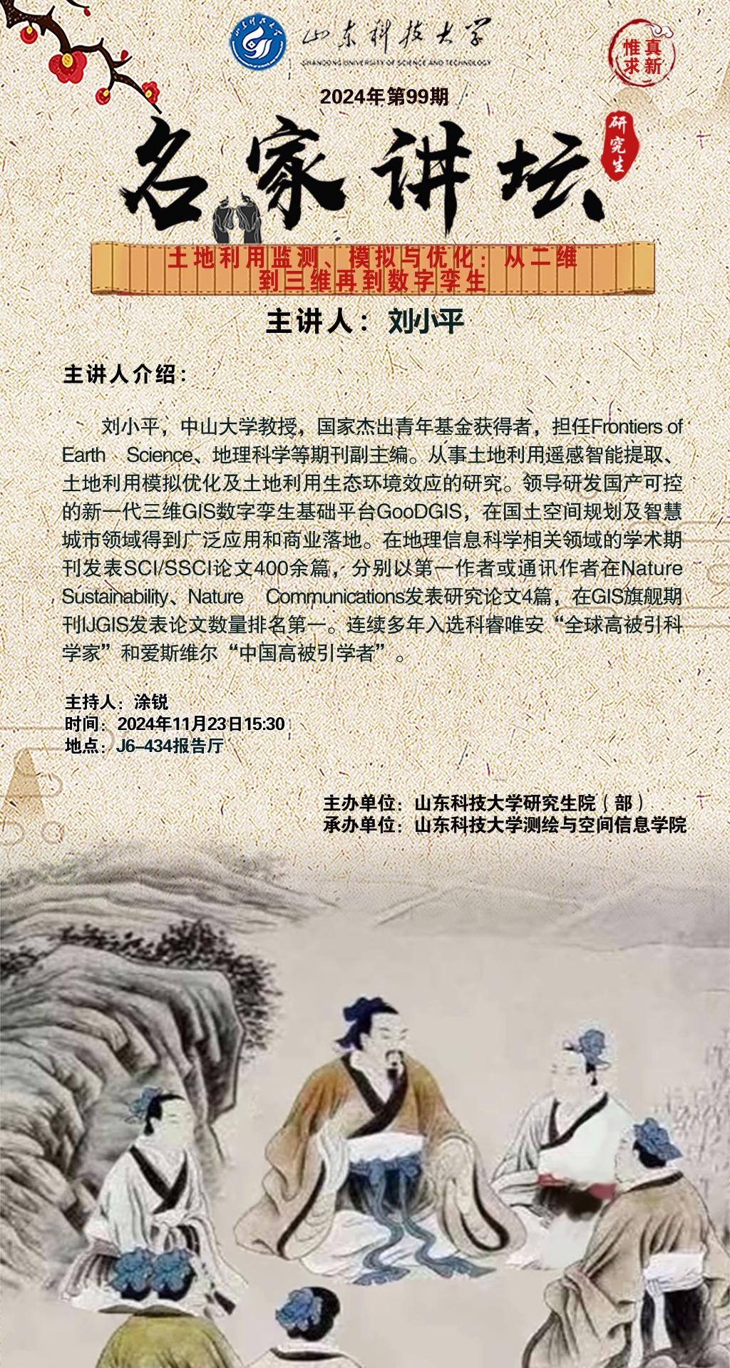 “名家讲坛”2024年第99期:土地利用监测、模拟与优化——从二维到三维再到数字孪生(总993期)
