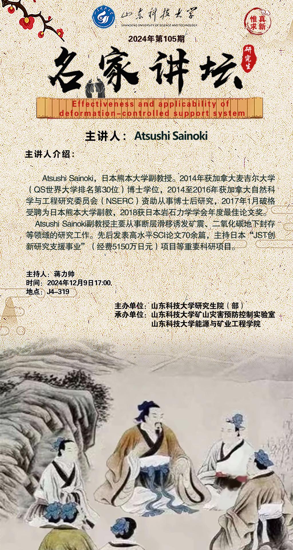 “名家讲坛”2024年第105期:Effectiveness and applicability of deformation-controlled support system(总999期)