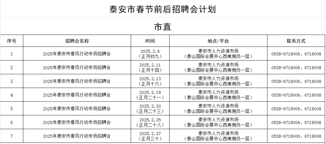 为给广大用人单位和毕业生搭建精准高效的对接平台,向毕业生提供更多优质就业岗位,现将泰安市在寒假期间的招聘引才活动通知如下。