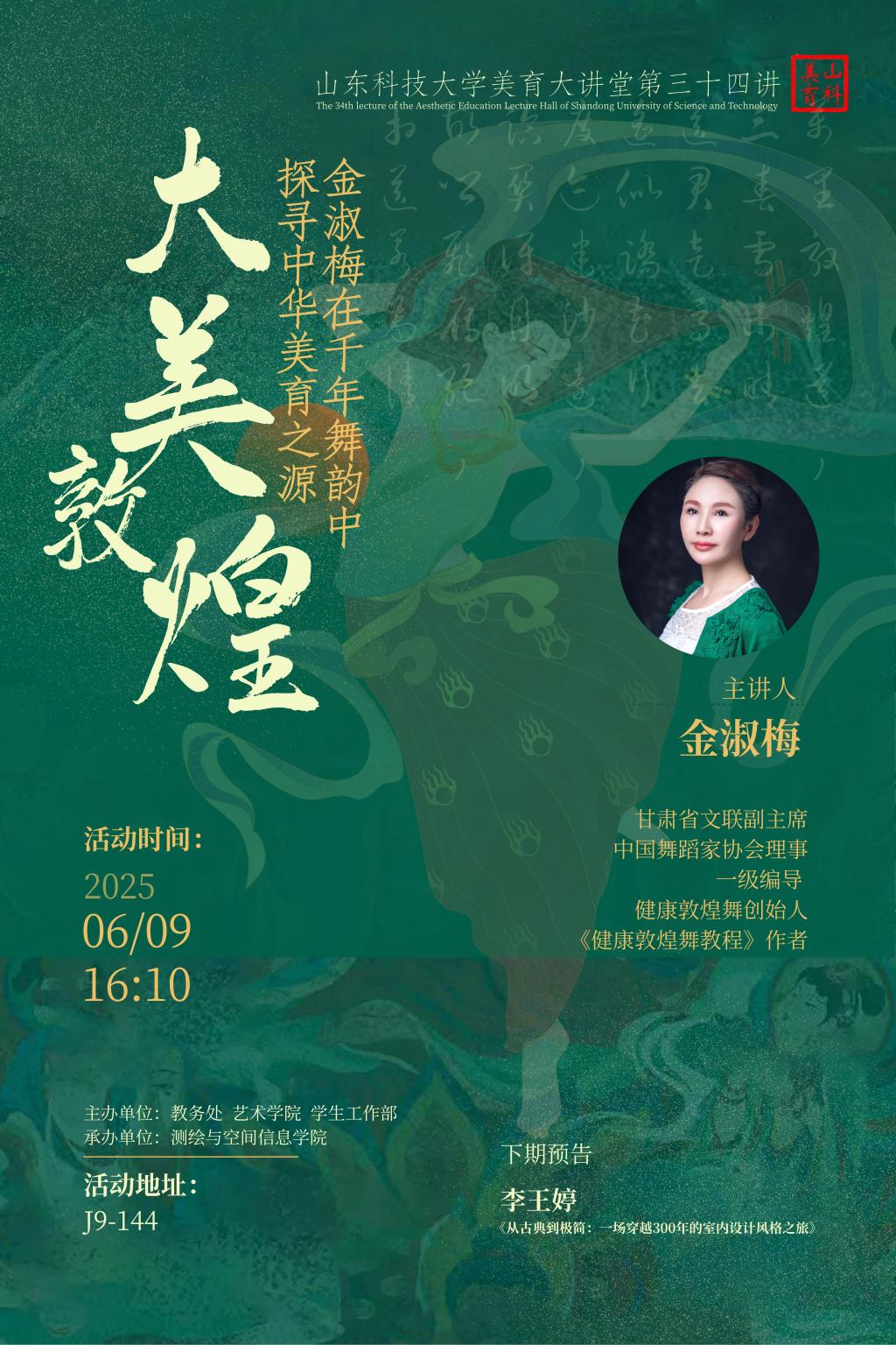 【山科美育】华体买球·(中国)官方网站美育大讲堂第三十四讲《大美敦煌:金淑梅在千年舞韵中探寻中华美育之源》
