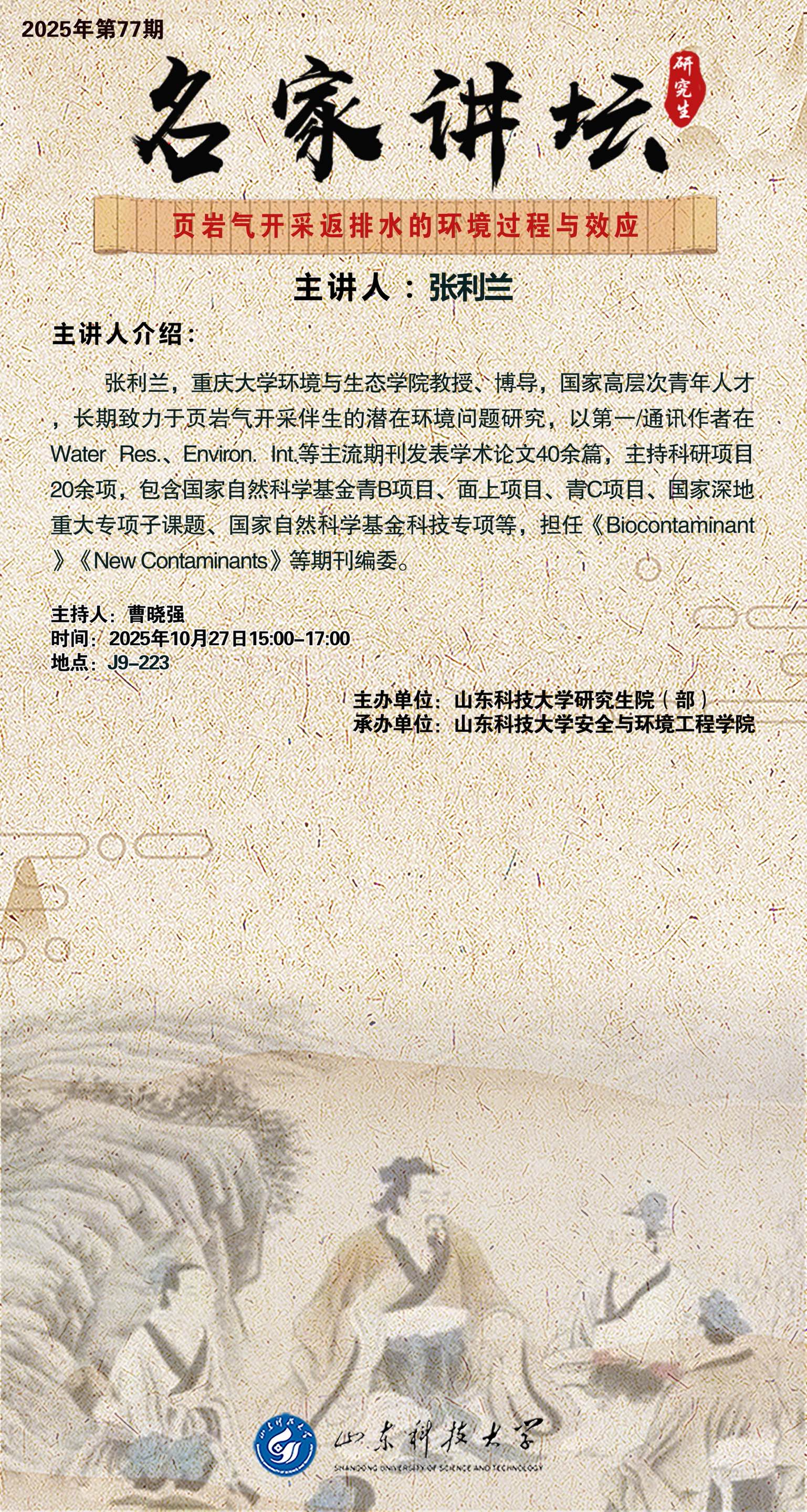 “名家讲坛”2025年第77期:页岩气开采返排水的环境过程与效应(总1082期)