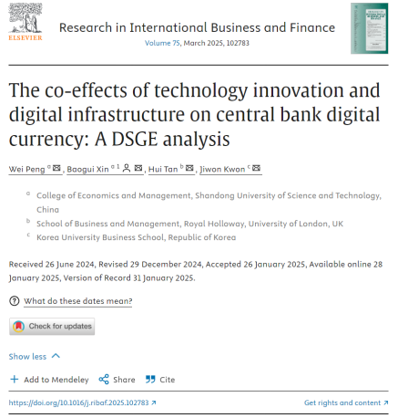 华体买球·(中国)官方网站经济管理学院青年教师彭伟与辛宝贵教授在《Research in International Business and Finance》发表题为“The co-effects of technology innovation and digital infrastructure on central bank digital currency: A DSGE analysis”的文章。