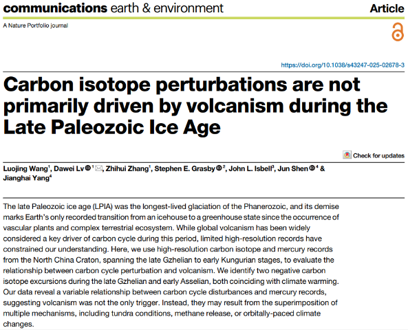 近日,华体买球·(中国)官方网站地球科学与工程学院吕大炜教授团队在国家自然科学基金(批准号:U24A20595, 42472166, 41972170)的支持下,联合美国、英国科学家,在晚古生代大冰期研究方面取得重要进展,研究成果分别以“Massive organic carbon burial in the North China Basin is a main contributor to peak Late Paleozoic Ice Age in earlyAsselian”和“Carbon isotope perturbations are not primarily driven by volcanism during the Late Paleozoic Ice Age”为题,发表于地球科学领域国际顶级期刊《Earth and Planetary Science Letters》(自然指数期刊)和Nature旗下Communications Earth & Environment(Nature Communications系列期刊)。(通讯员:贾海波 郑雪)